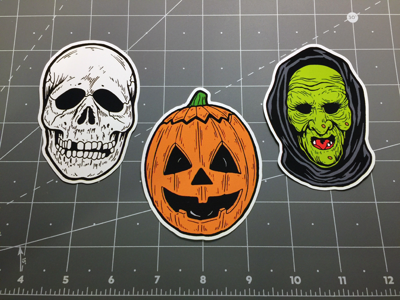 Halloween III 3 Season of the Witch Mask sticker decal set Skull Pumpkin masks 1980s horror film movie Silver Shamrock Novelties